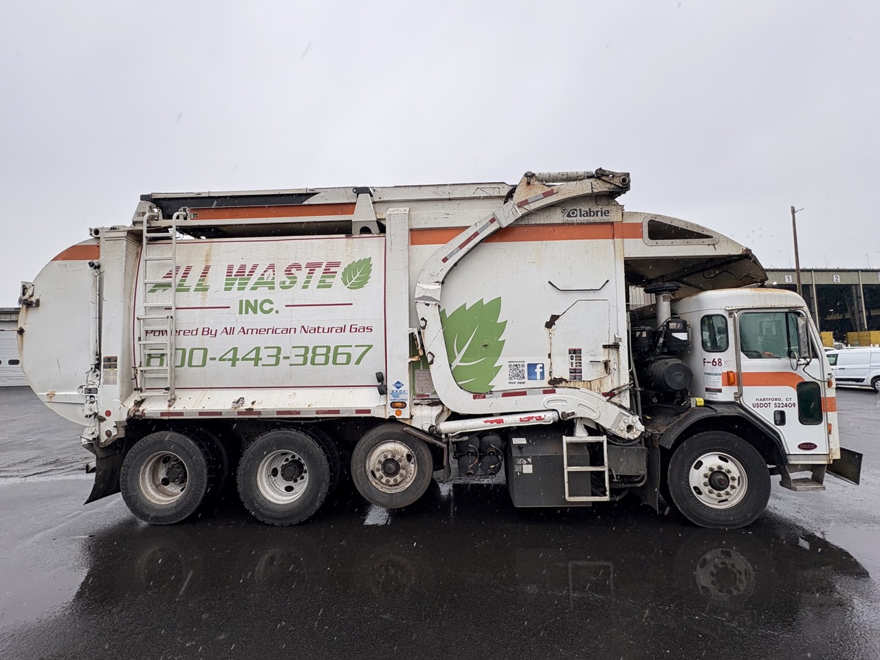 Featuring a used Peterbilt Waste Truck with a Labrie body with 22132 hours.