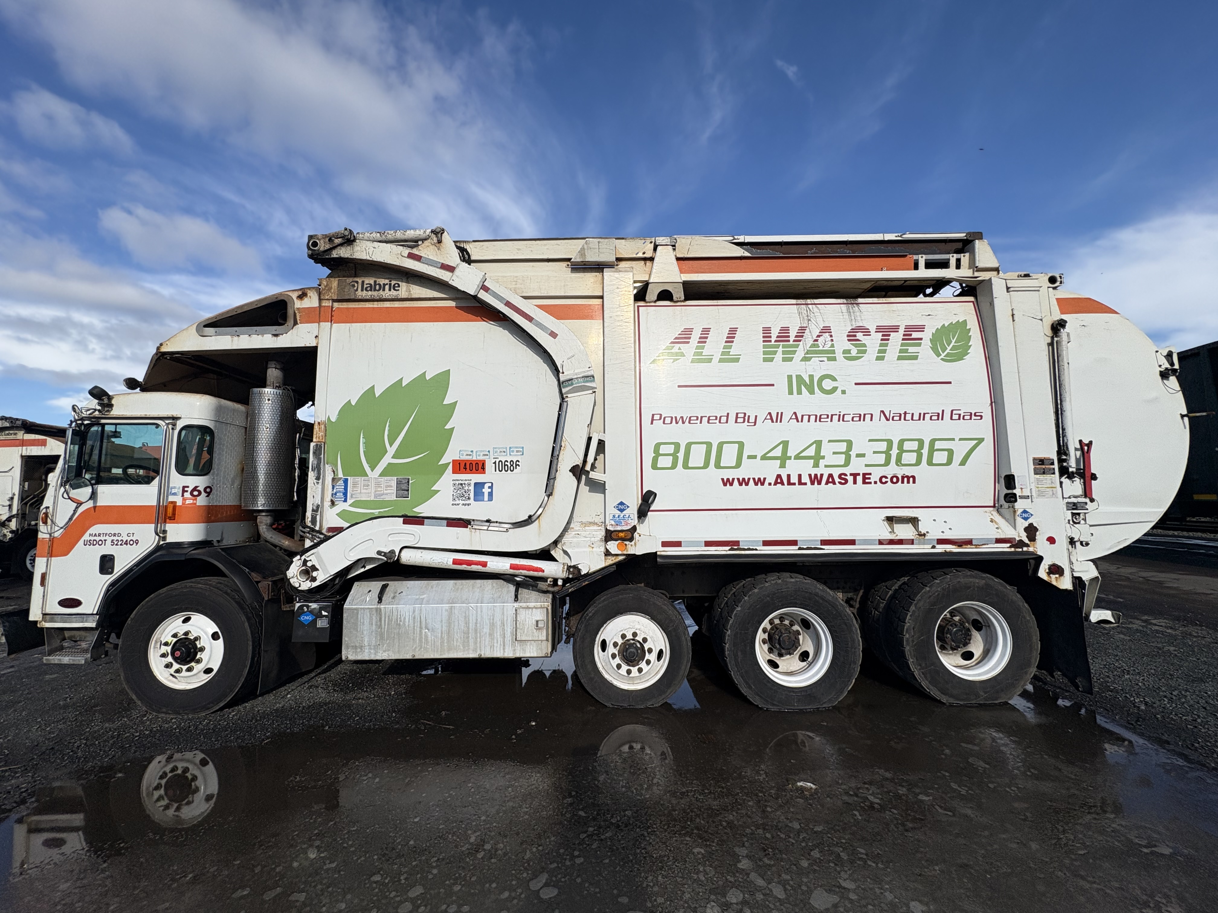 Featuring a used Peterbilt Waste Truck with a Labrie body with only 11712 hours.