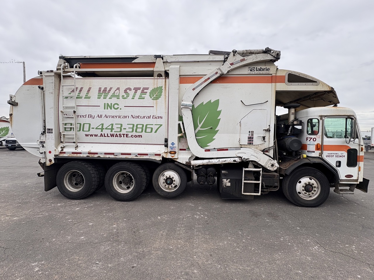 Featuring a used Peterbilt Waste Truck with a Labrie body with 13274 hours.